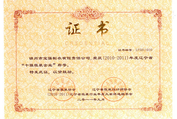 遼寧省十強(qiáng)服裝企業(yè)