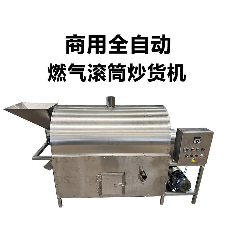 點火升溫應(yīng)啟動電機,使?jié)L筒轉(zhuǎn)動,避免滾筒局部受熱,滾筒預(yù)熱到50℃左右即可進(jìn)料炒籽,待物料炒到合適時(炒料時間視火力大小,一般為20-25分鐘,看籽炒熟)。即可判斷是否出料,如能出料按倒正開關(guān)放料,使物料陸續(xù)放出,每鍋炒料數(shù)量為滾筒容積三分之一以下為宜;下班講爐火熄滅,然后停機?;虺赐曜押髮t火熄滅,并旋轉(zhuǎn)3-5分鐘停機。